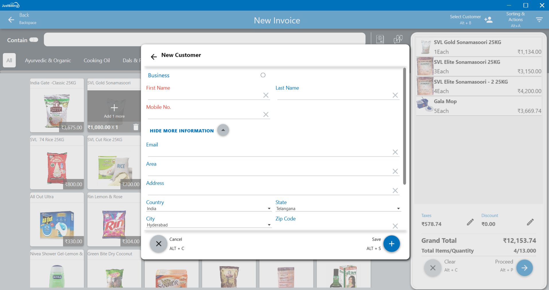 To add products to the cart through bar-code scanner, Plug the bar-code scanner to billing screen and scan the bar-code on the products.