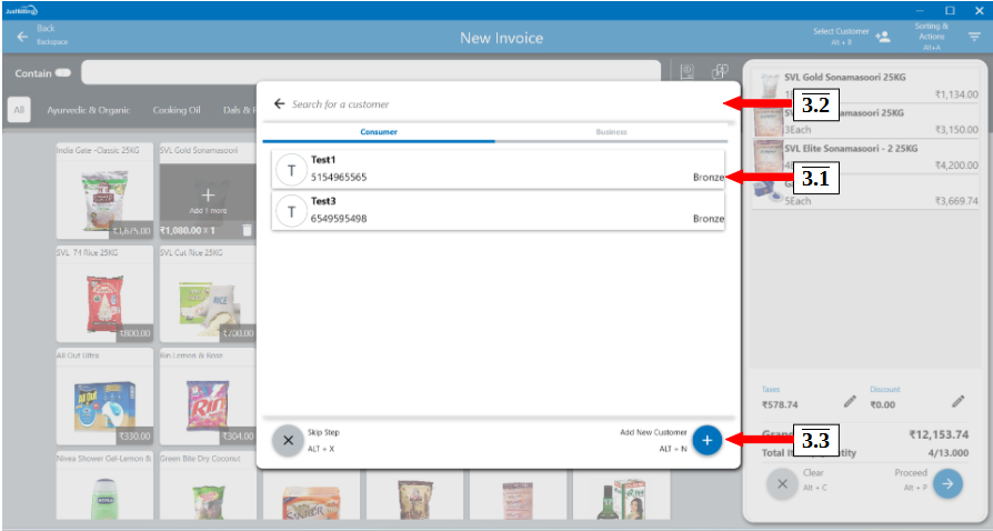 3.1. After clicking on the select customer, a screen is poped-up to select the existing customer, search the customer by name and can create a new customer or business (see figure 4).