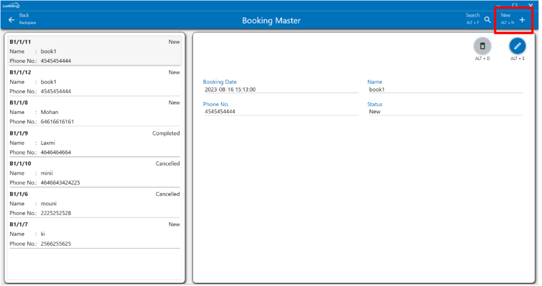 - Tap on the New + button or Alt+N and enter the Booking details.