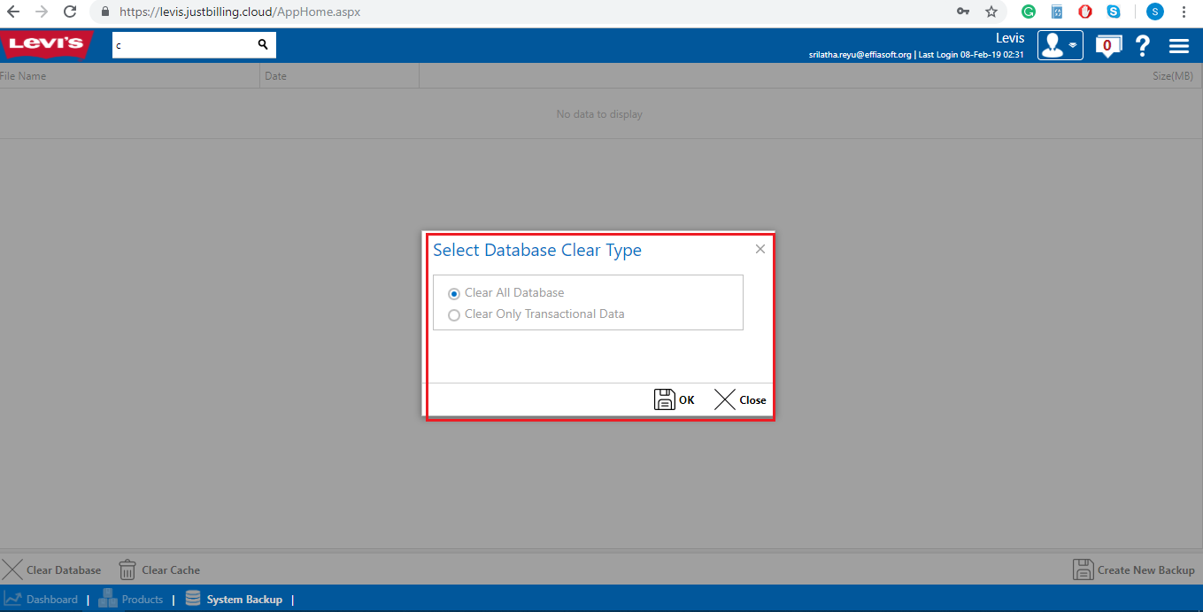 - To clear data from the Application you can simply navigate to System Backup page where you will find an option to clear data base.