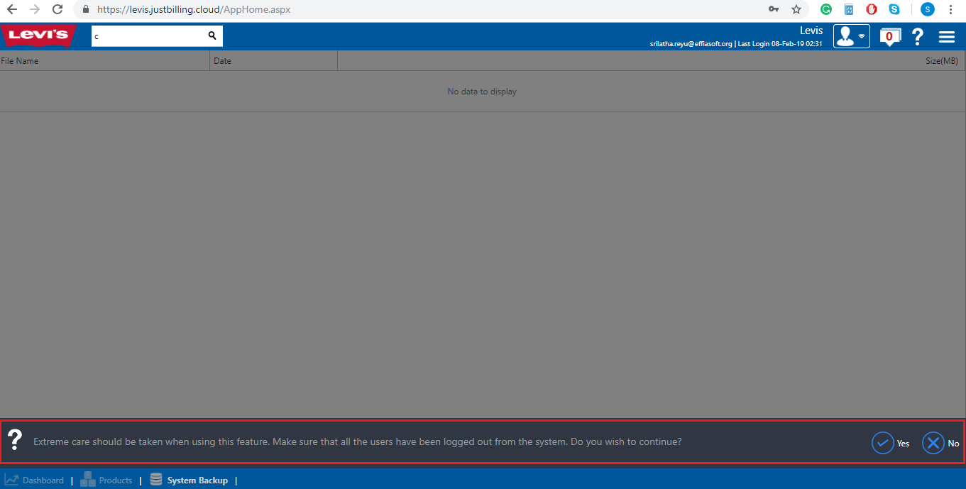 - It will ask " Extreme care should be taken using this feature. Make sure that all the users have been logged out from the system. Do you wish to continue? " Click on Yes.