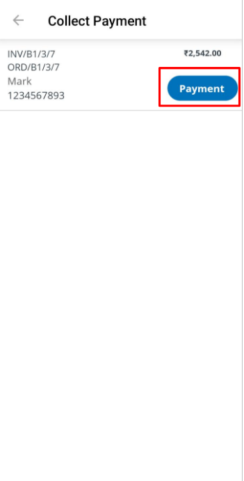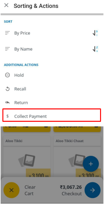 - Tap on collect payment from sorting & Actions on the invoicing screen (see figure 1)