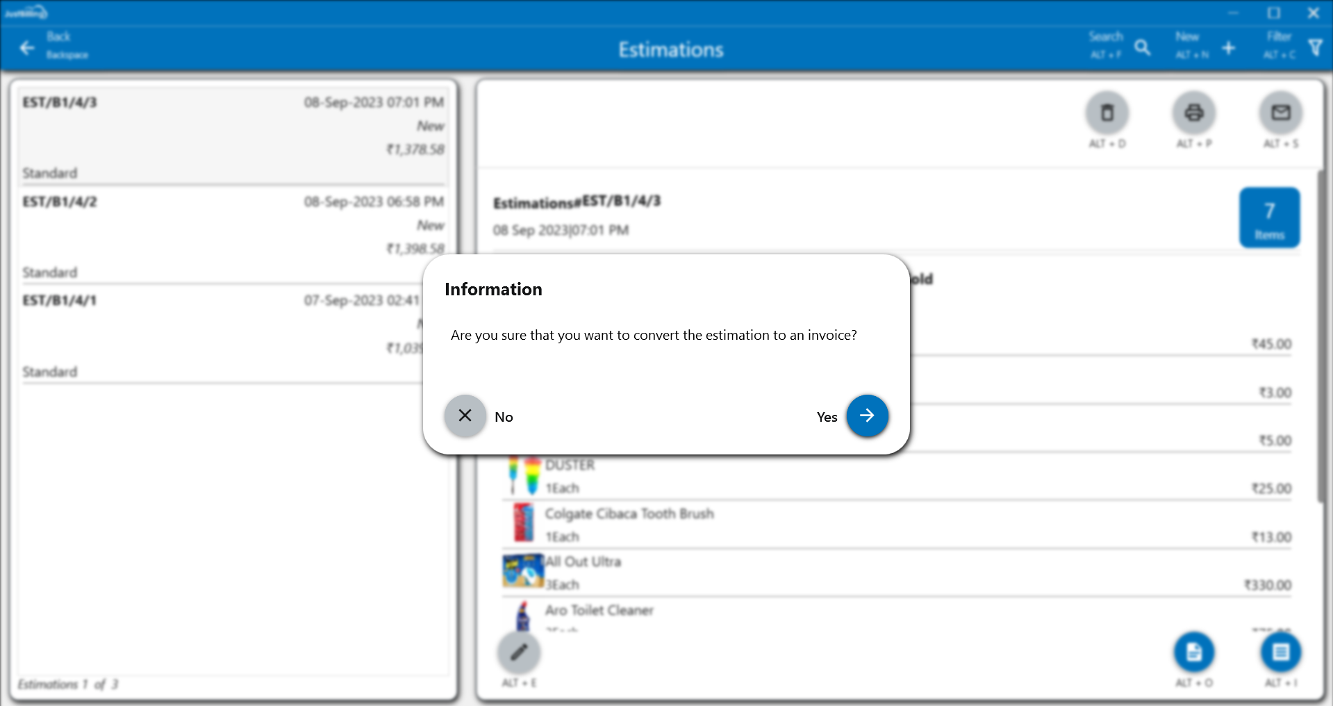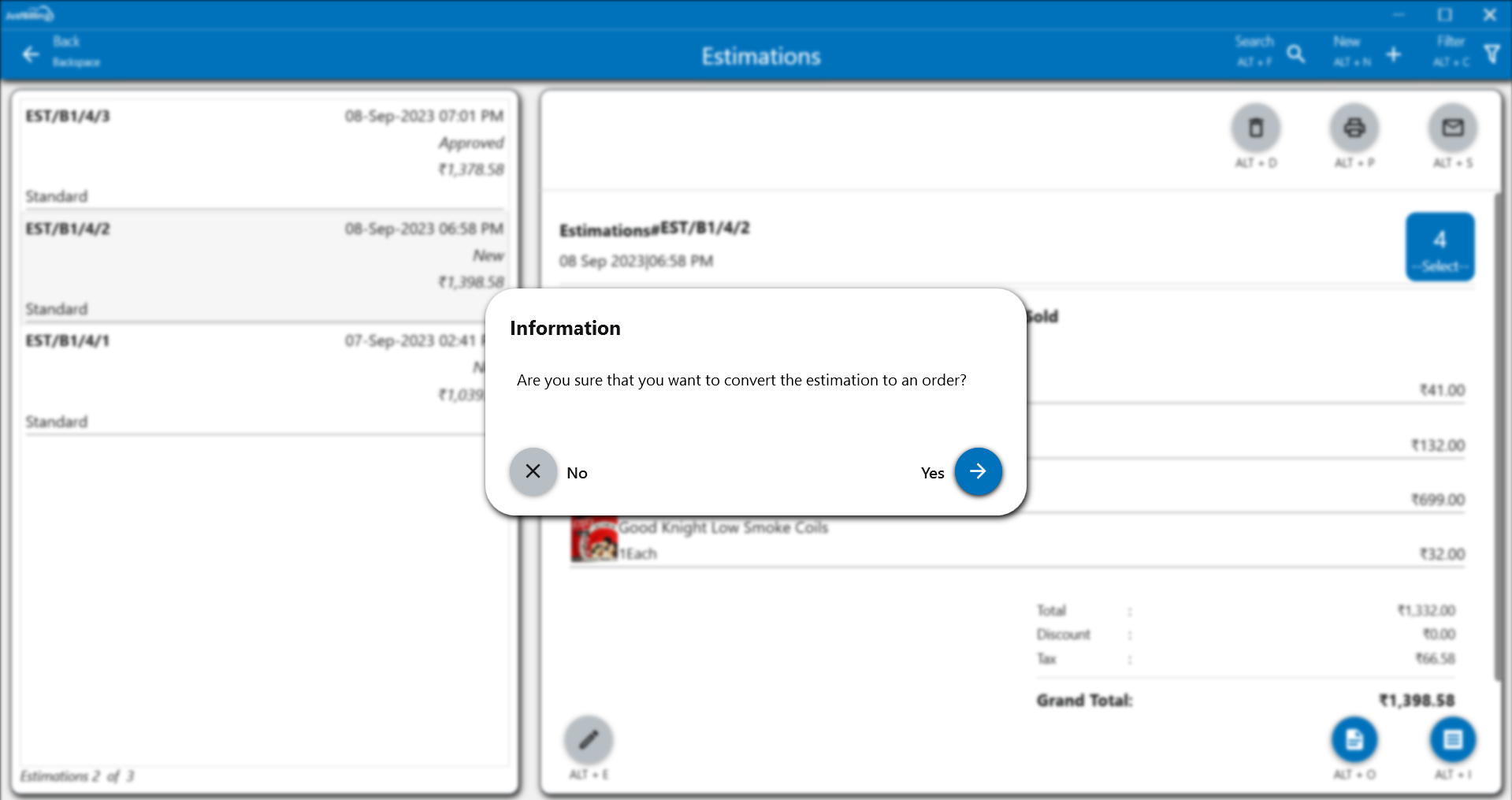 2. Select Estimation for which you want to convert to Invoice