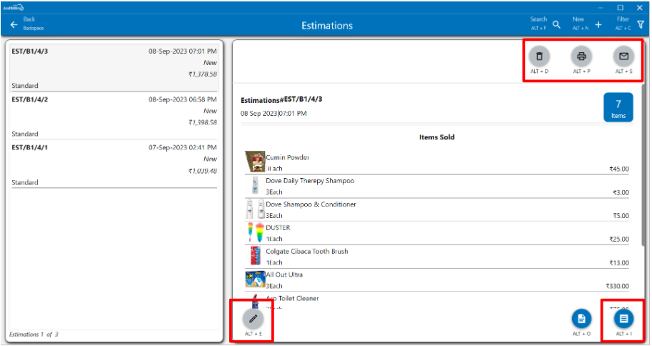 - The Estimations can also be edited, printed and Shared from the edit, print and share options provided.