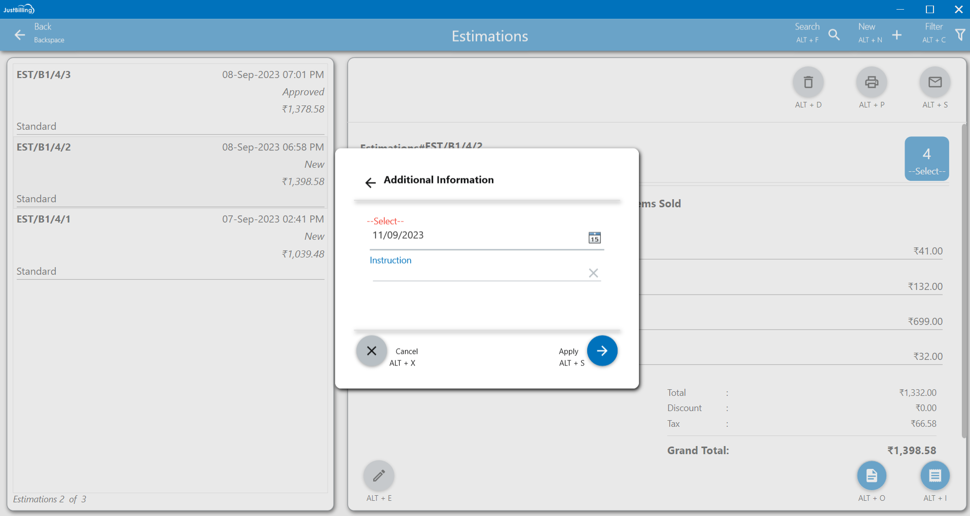 - Navigate to Menu > Transaction > Estimation