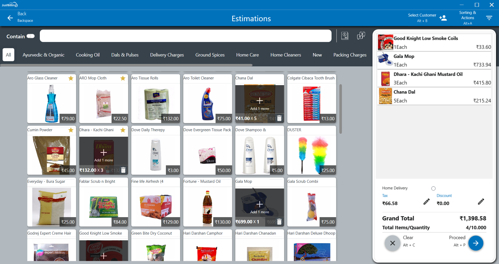 - From Estimation screen Select Order Type from Standard and Home delivery