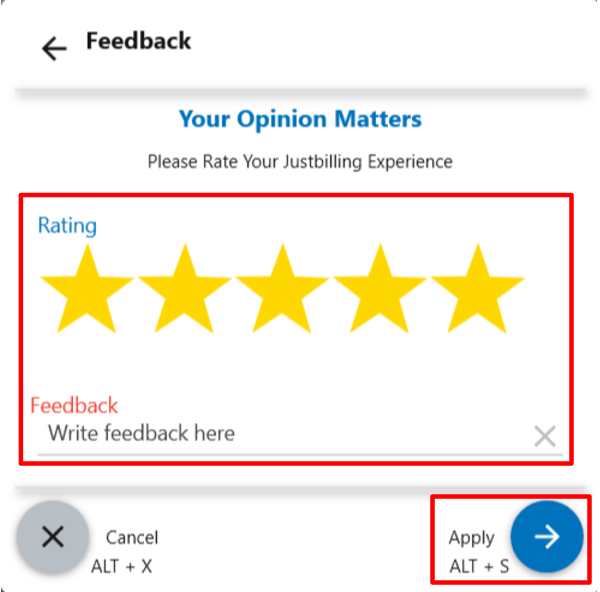 WindowsSupport Feedback Feedback This page will make you to provide feedback for Just Billing Application. You can rate Just Billing Application from this page and also write comments for the feedback and send it to us. (Figure 1 - Customer Feedback)