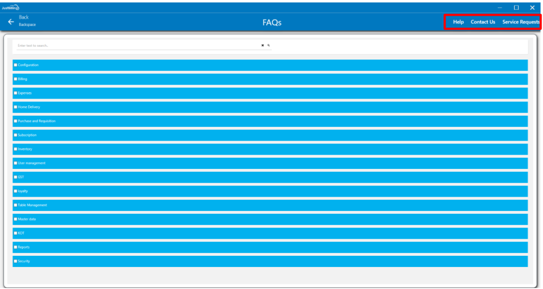 From this page it will take you to FAQ page, Help, Contact Us and Service requests