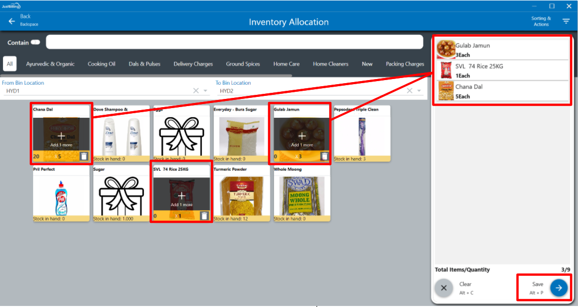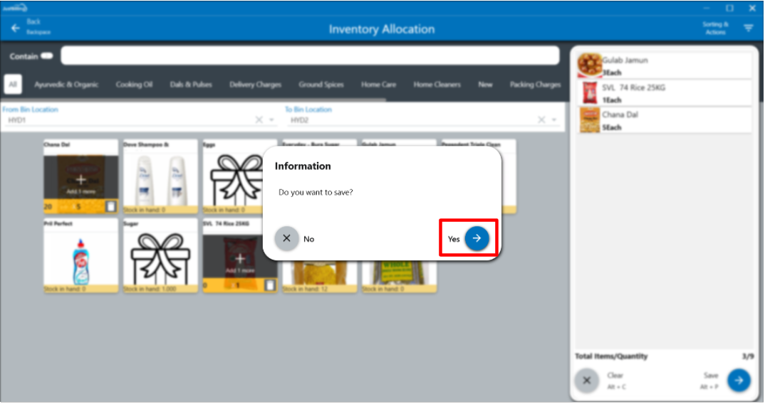 (Figure 3 - Save Bin wise stock allocation and transfer )
