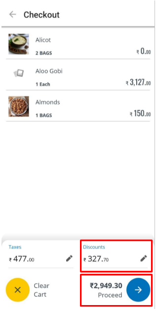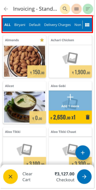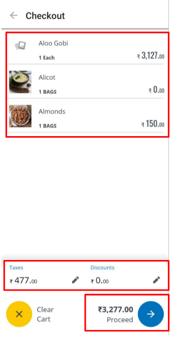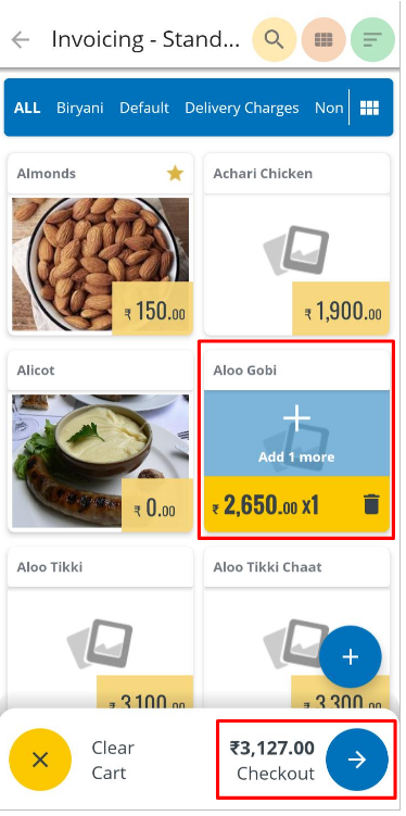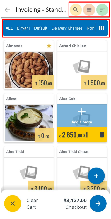 b) Bar code - To add items to cart through bar code, tap on the search or the bar code icon