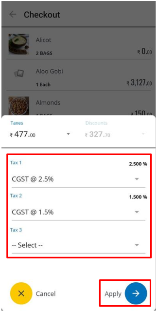 c) To add discount on the total bill amount, tap on Discount. This will open the Select Discount window (see figure 6A & 6B).