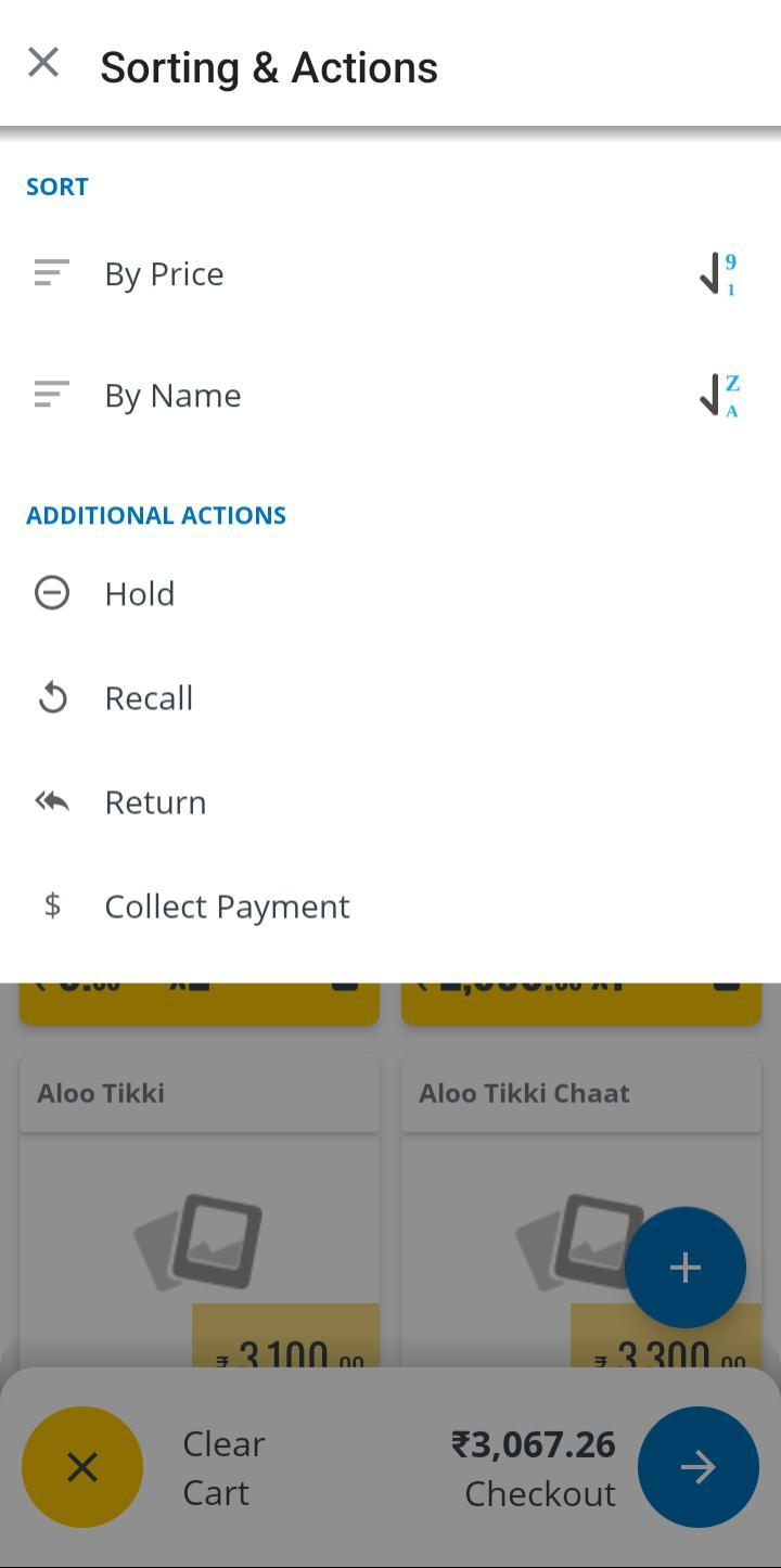 - To recall an order/bill that was put on hold, tap on Recall. To know how you can recall an order/bill, please refer Hold and Recall page.
