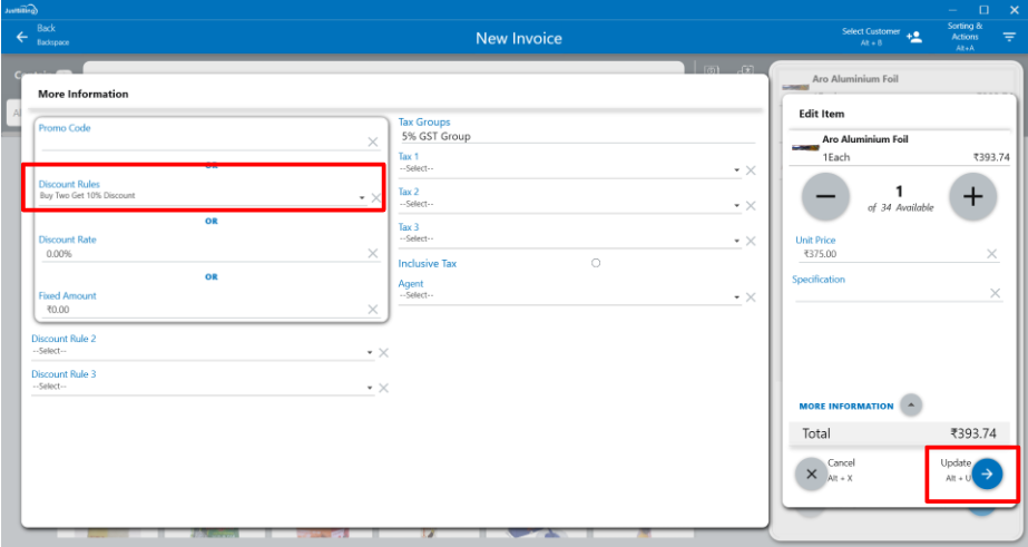 - Select a discount (for example, 10 % discount) from this pop up and update.