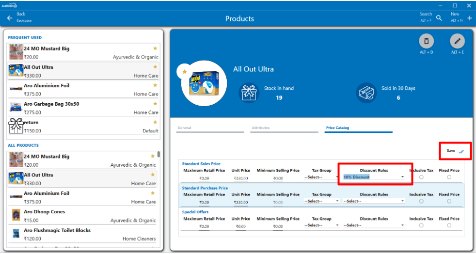 - Specify a discount (for example, 10% discount) for Standard Sales Price Catalog and Save (see figure 2).