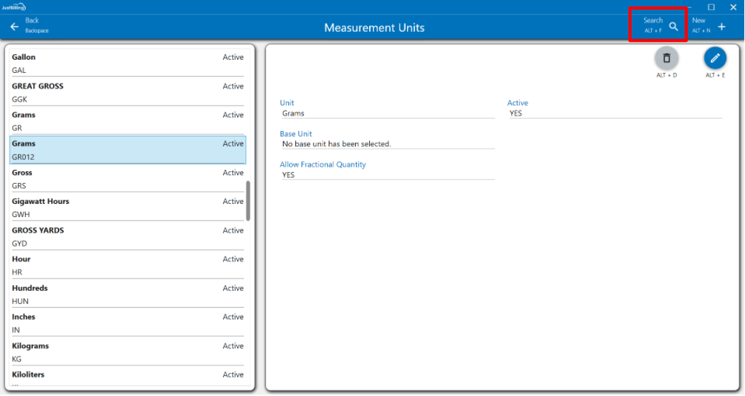 2. Enter the Measurement unit name or measurement code of unit so that it will filter the results
