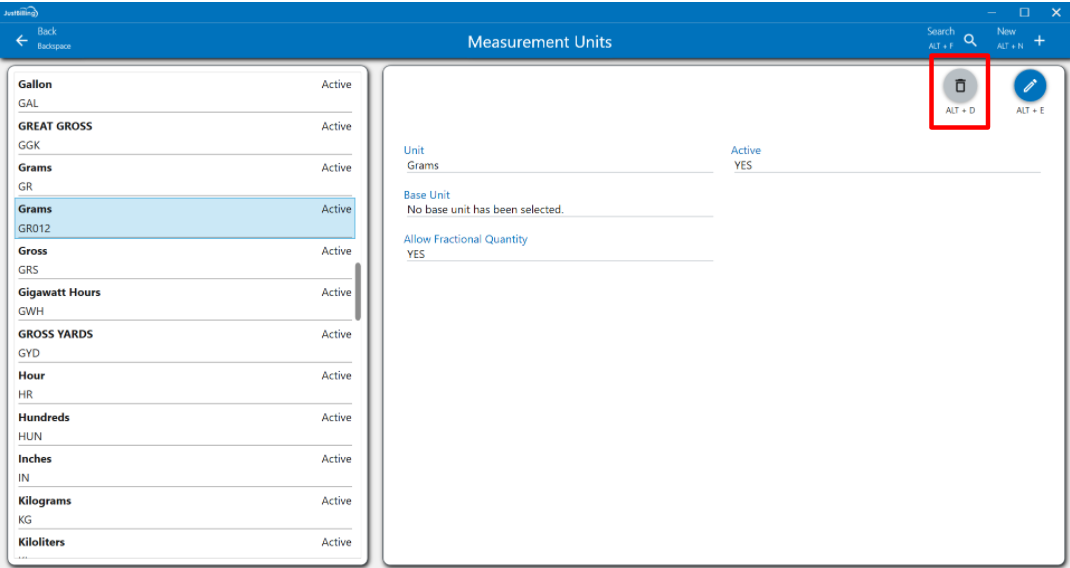 How to delete a Measurement Unit ?