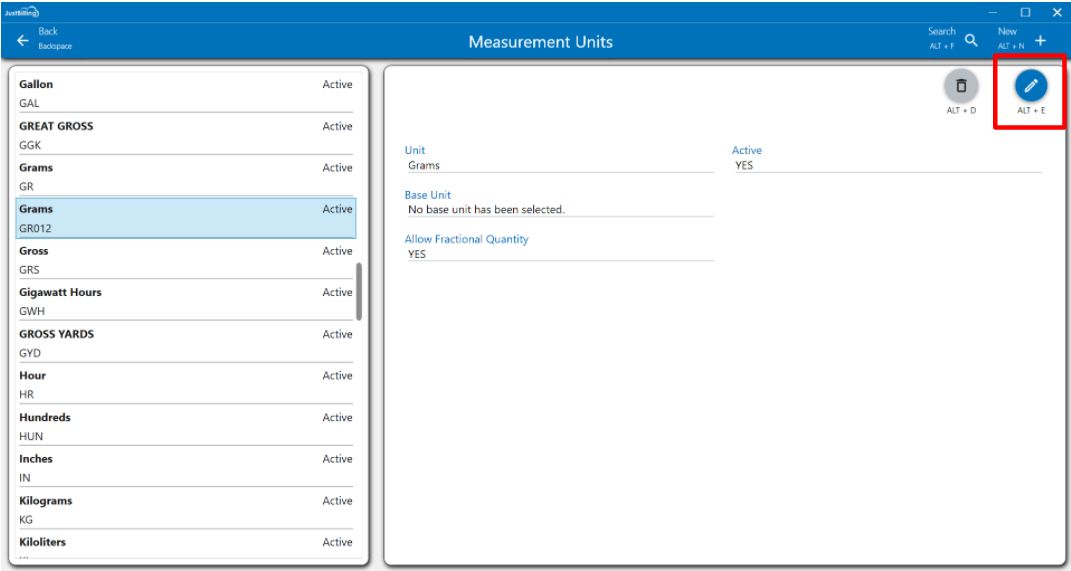 How to edit a Measurement unit ?