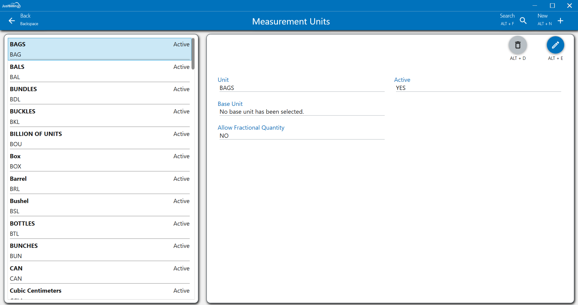 Note: Measurement unit page added from Just billing application will get synced to JB cloud Back office by Auto Sync.