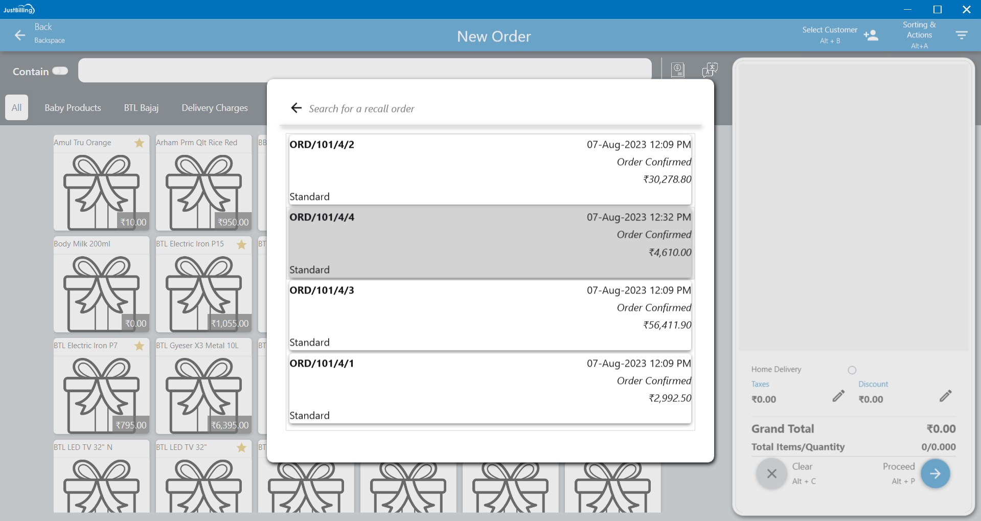 After clicking on Recall button, a screen is popped-up with a list of orders, here select the order as shown in below figure ( figure 6).