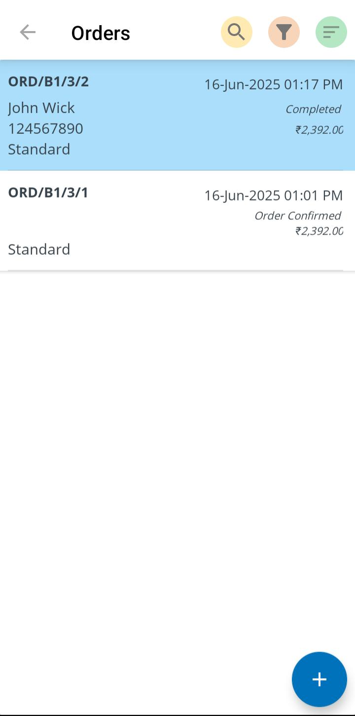 From this Screen you can view Order history, filter orders, sort orders and also to create orders.
