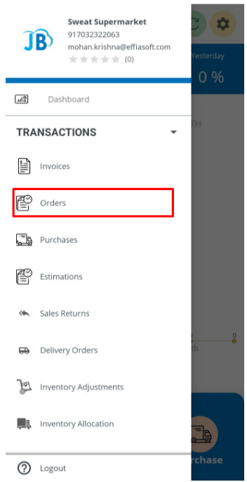 from top left and navigate to Orders screen, you can generate orders for the products/services you sell.