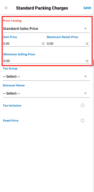 - Enter the price of the item for the selected price catalog.