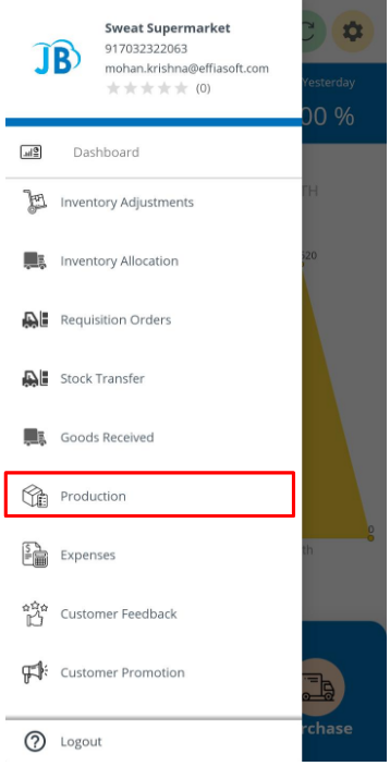 - Select the product that you want to do production. ( Example : Mango Milk Shake )