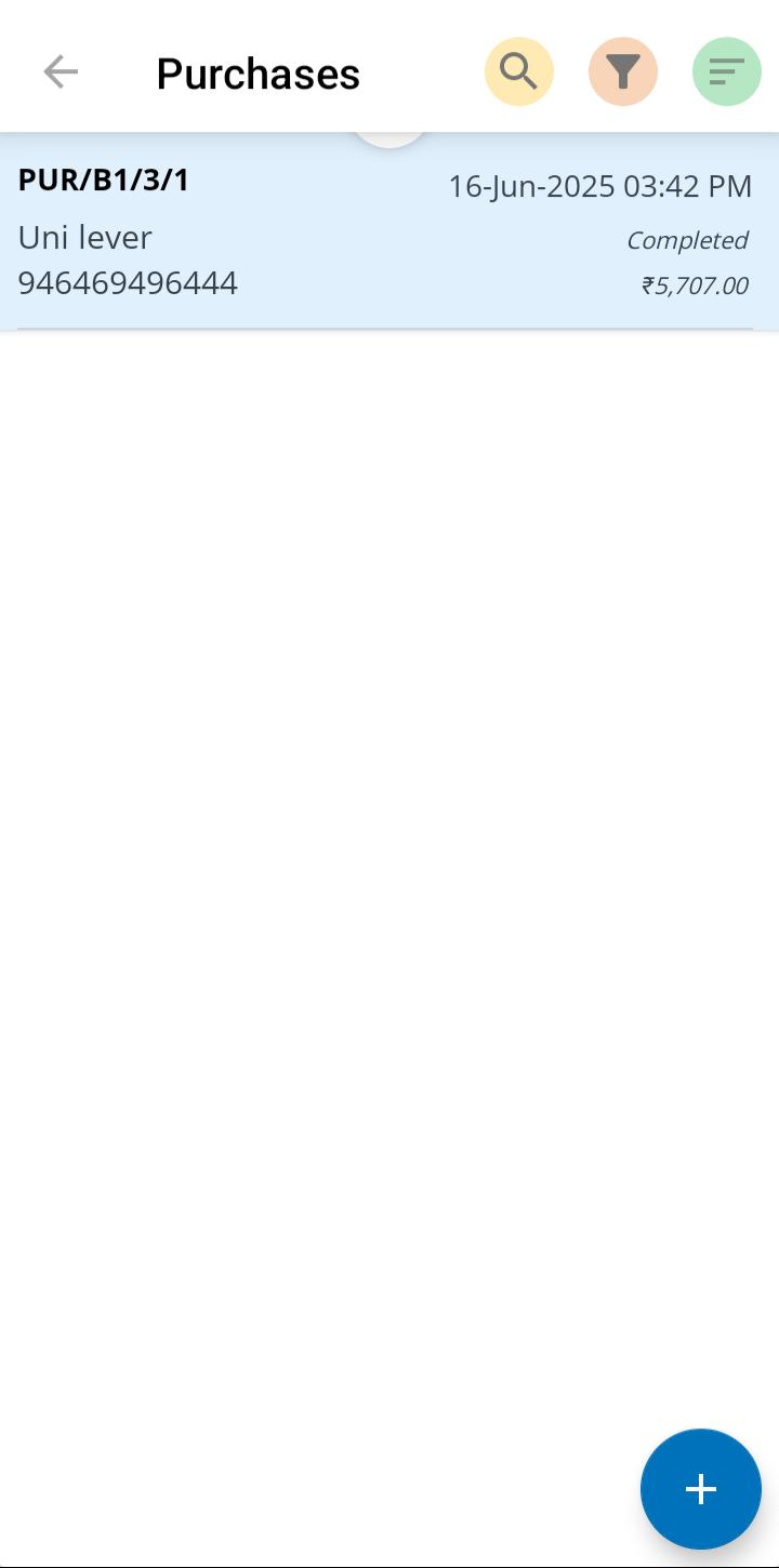 - This will open the Purchase History page, with the list of all the Purchase invoices generated.