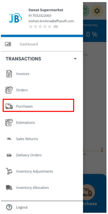 icon from top left > Transaction > Purchases > Click on