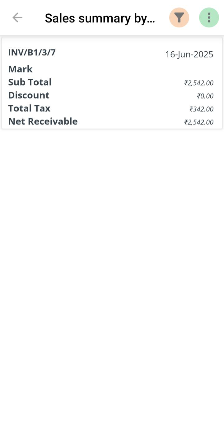 This "Sales Summary by Salesperson" report, specifically for "Mark" on June 16, 2025, shows a detailed breakdown of their sales. You can see the "Sub Total" of sales, any "Discount" applied, and the "Total Tax" collected. The "Net Receivable" line indicates the final amount expected from these sales.