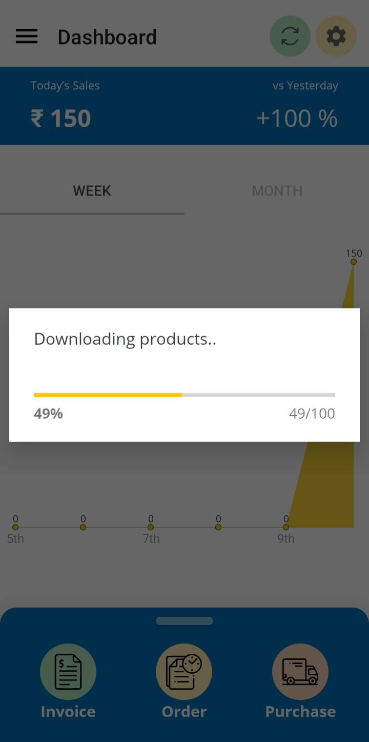 Step 6: After clicking the Save button, you will be taken to the Import Progress screen, where you can track the percentage of products being imported into the application. Once the import reaches 100%, you will be automatically redirected to the Dashboard screen to begin billing operations.(see figure 12)