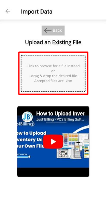 Step 1: Select the upload option to import data from the system (see figure 17, 18)