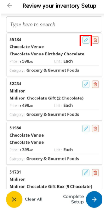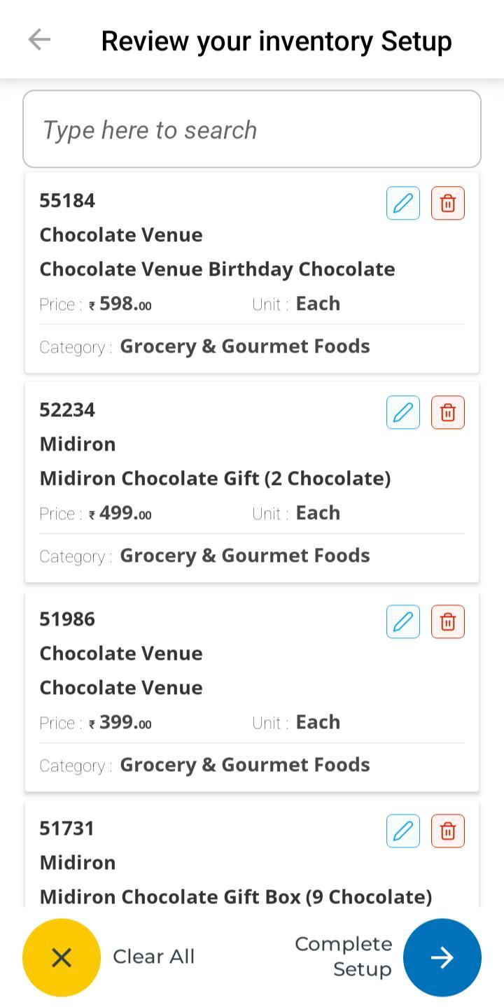 You can delete any unwanted products from the list during the inventory setup process. This allows you to ensure only the necessary items are imported into your inventory. (see figure 13, 14)