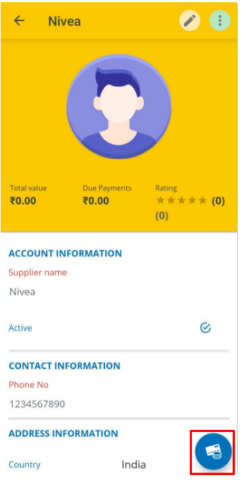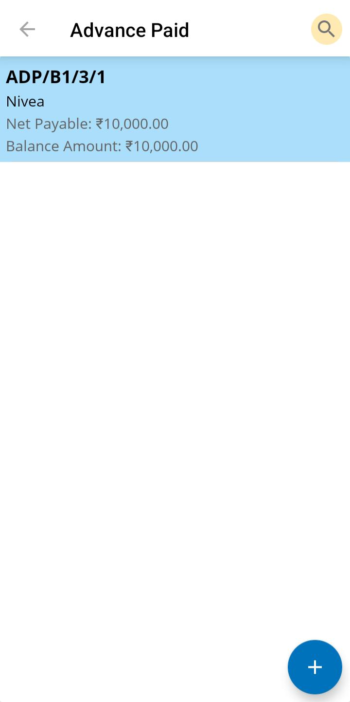 icon to open supplier Advance payment screen. - Tap on the Add icon