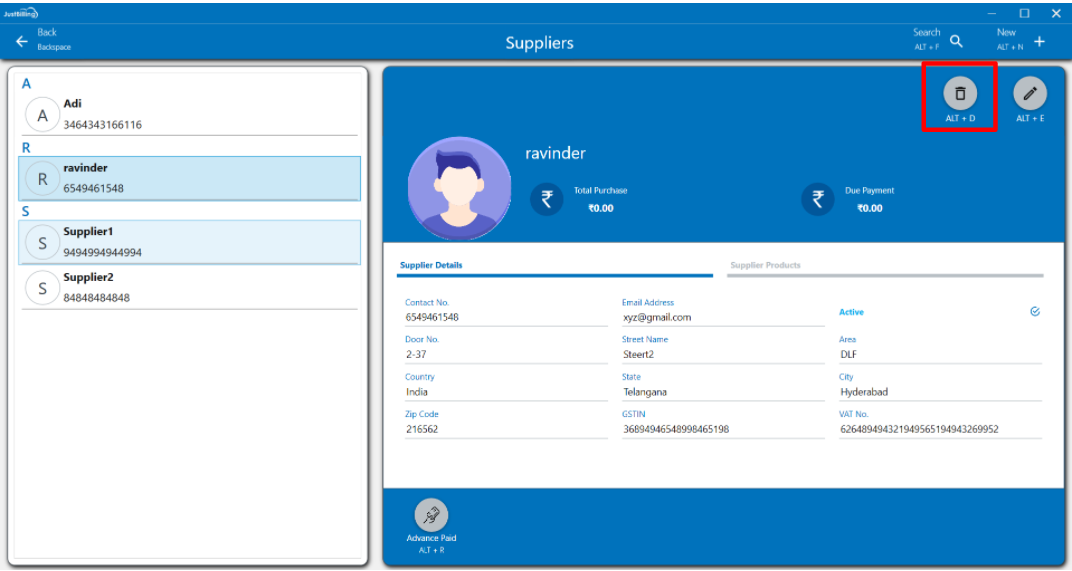2. Click on Yes to delete the Supplier, then the record will be deleted.